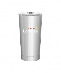 20 oz double wall 18/8 stainless steel thermal tumbler with vacuum insulation, and clear acrylic push-on swivel lid. Hand wash recommended. Do not microwave. Complies with FDA, Prop 65. 7.125" H x 3.75" W